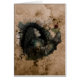 Un caballero oscuro ofrece una sola rosa roja de sangre, en la acuarela de goteo y estilo de tinta sobre papel envejecido.