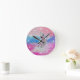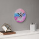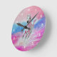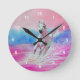Caballo blanco corriendo sobre un reloj de pared redondo en la playa
