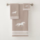 Tres rayas sobre la imagen del caballo blanco beige claro y personalizado. Toallas modernas y elegantes.