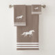 Tres rayas sobre la afortunada imagen del caballo blanco beige y personalizado. Toallas modernas y elegantes.