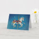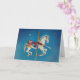 Un caballo blanco puro del carrusel cubierto hacia fuera en los colores patrióticos del rojo, del blanco y del azul tiene un tacto del top grande con una cara tallada del payaso en la silla de montar. Un cometa vuela cerca en el fondo del azul profundo del espacio. ¡Añada su propio tacto especial y personalice sus compras!
