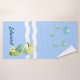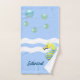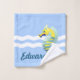 Caballo de mar con colores complementarios que evocan la vida marina: azul, blanco, amarillo dorado y verde.