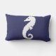 parte de la decoración de temática oceánica SEA HORSE WHITE sobre almohada azul
