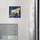Caballo palomino dorado con acentos dorados en un imán de cocina azul oscuro Pequeños regalos de vacaciones, favores de fiesta y halcones de medias.