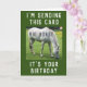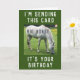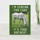Tarjeta de cumpleaños con un divertido mensaje de caballo! Enviaré esta tarjeta a caballo grande (porque) es tu cumpleaños. La imagen es una fotografía de un caballo blanco pastoreando en un campo. Tarjeta de tamaño estándar.