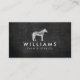 En esta rústica plantilla de tarjeta de visita destaca un diseño sencillo pero clásico de un ilustracion de estilo vintage de un caballo gris con su nombre o nombre de granja. Póngase en contacto con el diseñador si necesita más personalización. © 1201AM CREATIVE