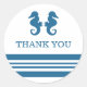 Elegante y clásico Boda de caballitos de mar Náuticos Gracias Pegatinas con un par de caballitos de mar simples y una serie de rayas en azul marino oscuro y blanco. Estos pegatinas náuticos temáticos pueden personalizarse fácilmente con los detalles de su boda. Para obtener más opciones de personalización, haga clic en el botón Personalizar.