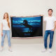 Caballo negro cosechando una manta azul y negro - Hermoso caballo negro criando frente a un cielo azul y la escena del agua. Personaliza esta manta de caballo con tu nombre de un amante de caballo que conoces!