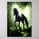 Un lindo y adorable caballo negro afuera en el bosque. Este es un arte generado por IA.