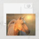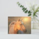 Diseño de caballos palominos con luz solar brillando en la postal de la cabeza del caballo.