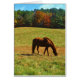 Caballo rojo marrón en los árboles de otoño