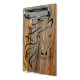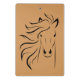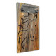 Cubierta de madera colorida sobre una diagonal sobrepuesta con un contorno de cabeza de caballo.