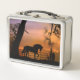 Un caballo de bonito montado al atardecer con una cerca de campo y un roble de herencia, esta es una caja de almuerzo tan fresca y de bonito. Los colores del suroeste son muy bonitos.