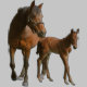Un potro se apoya a la yegua y practica el equilibrio