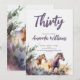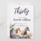 Diseño de acuarela rústico con caballos salvajes parados en el sage morado y letra de guion morado que es bonito y de moda. Fácilmente de personalizar con todos los detalles del fiesta. Hay un solo caballo en la escoba de salvia en la parte trasera. Puedes cambiar los años a cualquier cumpleaños que desees.