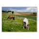 Escena encantadora de un caballo marrón y un caballo de Pinto en tierras de cultivo en Austria