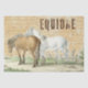 Imagen vintage de 1802 de caballos en un pasto. Un caballo marrón y otro blanco. El caballo blanco tiene la cabeza sobre el caballo marrón. Fuente vintage con fondo de papel antiguo. Perfecto para desconectar el mobiliario antiguo.