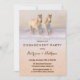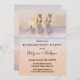 Romántica invitación a la fiesta de compromiso con dos caballos blancos corriendo en la nieve.