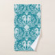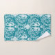 Este verde azulado patrón de damasco blanco y azul tiene un giro costero: caballitos de mar, algas marinas, corales y conchas para una atmósfera marina submarina. El kit de toallas de baño es perfecto para la decoración de los baños costeros.