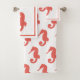 Estas toallas de baño de moda son perfectas para tu cuarto de baño. Las bonitas siluetas de caballito de mar rosa de coral y la frontera rosa de coral le dan un toque divertido de forma minimalista.