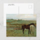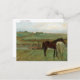 Postal con el bonito cuadro de arte Caballos en una pradera (1871), del impresionista francés Edgar Degas (1834-1917). Un retrato de dos caballos un marrón y uno blanco en el pasto.
