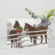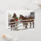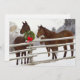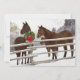 Caballos mirando la valla en la nieve al lado de los Navidades coronaron