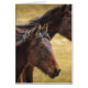 Se enfoca una imagen fotográfica a color de primer plano de dos caballos uno en primer plano, y el otro en segundo plano está ligeramente fuera de foco para un efecto agradable. Ambos caballos son un marrón oscuro que se complementa con el campo de césped dorado que hay al fondo. Hay una sensación de campo muy terrenal en esta imagen y se termina con una bonita viñeta para atraer la atención hacia la foto. Este producto es personalizable. Elige tu estilo o opciones para hacerlo como te guste.