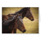 Se enfoca una imagen fotográfica a color de primer plano de dos caballos uno en primer plano, y el otro en segundo plano está ligeramente fuera de foco para un efecto agradable. Ambos caballos son un marrón oscuro que se complementa con el campo de césped dorado que hay al fondo. Hay una sensación de campo muy terrenal en esta imagen y se termina con una bonita viñeta para atraer la atención hacia la foto. Este producto es personalizable. Elige tu estilo o opciones para hacerlo como te guste.