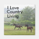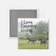 Fotografía de Caballos Normalizados corriendo a través de un pasto o campo en una mañana nublada, con las palabras "Amo la vida en el campo", impresas en un imán.