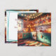Linda cocina vintage azul turquesa llena de decoraciones navideñas y luces de Navidad y ambiente retro. Deseándote una Navidad acogedora y anticuada y un Feliz Año Nuevo. El texto del reverso de esta tarjeta de Navidad se puede personalizar, para que puedas agregar tu nombre si lo deseas o cambiar el saludo de Navidad.