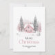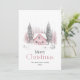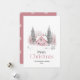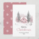Esta encantadora tarjeta de felicitación navideña presenta una suave ilustración de acuarela de una cabaña rosa ubicada entre abetos nevados y árboles invernales desnudos. La elegante felicitación de "Feliz Navidad" está impresa en una delicada tipografía serif, lo que añade un toque acogedor y festivo. Personalizable con el nombre de una familia y la fecha, esta tarjeta caprichosa es perfecta para enviar cálidos deseos navideños a amigos y familiares, llevando alegría y felicidad a su temporada festiva.