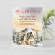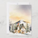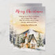 Esta hermosa y festiva tarjeta de Navidad de acuarela se puede personalizar con el nombre de su familia. Cuenta con una rústica cabaña de invierno rodeada de nieve, montañas y árboles. Hay adorables animales, como un gato y un ciervo, y también hongos, bellotas y follaje. El texto combina fuentes manuscritas y sans serif para un look elegante y moderno.