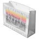 Cabinas de playa de retiro al atardecer gran bolsa de regalo. Una manera encantadora de envolver un regalo para una mamá, esposa o compañera de trabajo que se retira. Haga clic en personalizar para cambiar el nombre del bolso. Este bonito diseño costero también ofrece tarjetas y cojines a juego. Imagen tomada en Bude, Cornwall, Reino Unido.