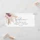 Este boho pampas colgando la cabecera de bienvenida de la tabla de asientos es perfecto para un boda de verano. El diseño de la acuarela floral incluye flores bohemias de color burdeos y rosas rubias con brotes de pampas neutras y hojas de palmera doradas secas. La tarjeta se imprime en la parte delantera y trasera (doble cara). Compruebe la colección para las tarjetas de la tabla de asignación de asientos de número de tabla de coordinación.