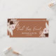 Este encabezado de bienvenida de la tabla de asientos florales de Boho Terracotta se coordina con las tarjetas de asiento correspondientes y es el toque final perfecto para la recepción de tu boda. Guíe a sus huéspedes para que se sientan con esta tabla de asientos única. Las tarjetas son perfectas para colgar o mostrar en una mesa o pared. El diseño presenta un elegante tipo de letra con flores acuáticas en rosa rubor y terracota con pasto pampas y palmas secas. El diseño está impreso en ambos lados.
