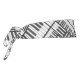 Cabeza negra y blanca con un patrón de teclas de piano en diferentes tamaños y ángulos.