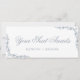 Tarjeta de cabecera Dusty Blue Vintage Escudo Boda de mesa de sillas de mesa. Todos los textos están preorganizados para que puedas personalizarlos fácil y rápidamente con tus propios detalles.