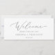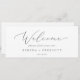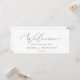 Este delicado cabecero de bienvenida de la tabla de asientos colgantes plateados es perfecto para un boda moderno. El romántico diseño minimalista presenta una bonita y elegante tipografía de color gris plateado sobre un fondo blanco con un aspecto limpio y sencillo. La tarjeta se imprime en la parte delantera y trasera (doble cara). Compruebe la colección para las tarjetas de la tabla de asignación de asientos de número de tabla de coordinación.