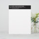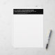 Letterhead que usted puede personalizar su encabezamiento para anunciar su negocio o promocionar su marca a clientes o clientes. Un suministro de oficina que se puede utilizar para crear conciencia sobre el nombre de marca. El diseño de la partida son textos blancos sobre fondo negro. Los contenidos del encabezamiento de este membrete son el logotipo de su empresa, el nombre de su empresa o negocio, la dirección, el número de teléfono, el correo electrónico y el sitio web.