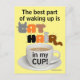 ¡La mejor parte de despertarse es el pelo de gato en mi taza! Humorous cat lover postal de AaronDesignsUS.