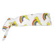 Dale a tu cabello un nuevo estilo con esta banda de imagen de arco iris. La banda de cabello de colores brillantes presenta un divertido patrón de arcos que emergen de los brillantes pernos de iluminación amarilla, contra un fondo blanco. Obra de arte de la ropa y los coleccionables de Buttercup. Disponible en varios tamaños.
