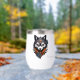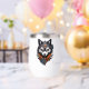 Cabeza de lobo majestuosa, terminada en una sombra oscura y profunda de gris. El lobo lleva un elaborado discurso compuesto de intrincados patrones de inspiración tribal. El rosa simboliza la belleza y la transitoriedad, complementando perfectamente la poderosa imagen del lobo. En general, el diseño transmite un equilibrio armonioso entre fuerza y gracia, con la combinación de gris oscuro y naranja brillante, así como los elementos florales, creando una narrativa visual cautivadora