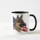 El perro de pastor alemán noble headstudy delante de una bandera americana que agita en la taza de su opción.