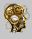 Cabeza conceptual, mecánica, humana con manómetro antiguo y engranajes metalizado sobre fondo industrial gris. Estilo Steampunk.