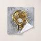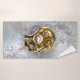 Cabeza conceptual, mecánica, humana con manómetro antiguo y engranajes metalizado sobre fondo industrial gris. Estilo Steampunk.