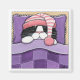 Magnífico de arte para gatos caprichosos. Un dormido gato blanco y negro se esconde en la cama con una gorra nocturna de rayas rosas y blancas. Creada de una pintura original © 2008 Lisa Marie Robinson