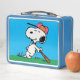 Snoopy, el querido beagle de la tira cómica de Peanuts, es a menudo retratado jugando béisbol con su amigo de plumas Woodstock y el resto de la banda de Peanuts. Aquí aparece mientras está en el bate.
