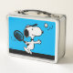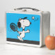 En la tira cómica de Peanuts y en películas animadas, a menudo se representa a Snoopy jugando al tenis contra su propietario Charlie Brown u otros personajes como Linus y Lucy. Este diseño muestra las habilidades atléticas y el espíritu competitivo de Snoopy de una manera humorística.