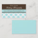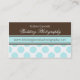 El estilo elegante y sofisticado exuda la clase y es perfecto para muchos empleos incluyendo fotógrafos del boda. ¡El azul verde azulado marrón y delicado del cacao elegante es un partido hecho en cielo! Haga clic el personalizar y añada el texto a la parte posterior de la tarjeta si es necesario. ©2010 subliman Statinery todos los derechos reservados