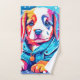 Un diseño de arte colorido y lindo de un cachorro con un abrigo azul (Este diseño hecho con IA). ¡Haga el pedido hoy y acepte la alegría de ir de compras!